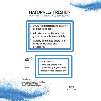 100% Antibacterial and safe for all shoes and feet. Natural essential oils that get rid of smells immediately. Quickly eliminates odors in all kinds of footwear and accessories