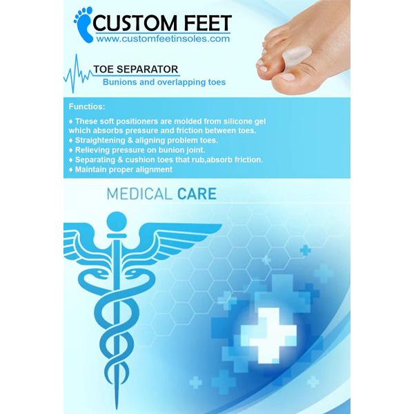 Functions: ♦ Cushions & supports bent-under toes. ♦ Fixes and separates toes, and improves toe deformity. ♦ Avoids toes squeezing each other, making a great alignment for them. ♦ Ease the pressure and friction of the Ball-of-foot part. ♦ Relieves pressure and friction on the toes.