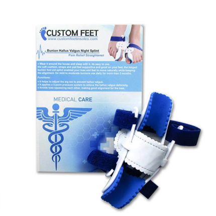 Custom Feet Bonion Hallux Valgus it's easy to use; the soft cushion, straps, and pad feel supportive and good on your feet, the foot aid splint enables your toes to move naturally while keeping the alignment at night. Wear it at home and sleep with it. For mild to moderate bunions use daily for more than 3 months. Functions: ♦ It helps to adjust the big toe to prevent hallux valgus. ♦ It applies a 3-point pressure system to relieve the hallux valgus deformity. ♦ Avoids toes squeezing each other, making good alignment for the toes.