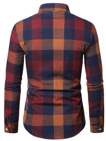 Men’s Orange Plead Button Up Shirt