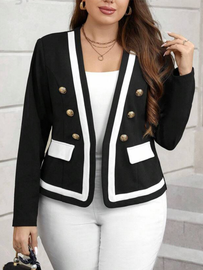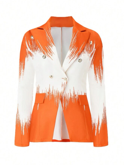 Orange and White Casual Double Breasted Curvey Plus Elegant Blazer Curvey Plus