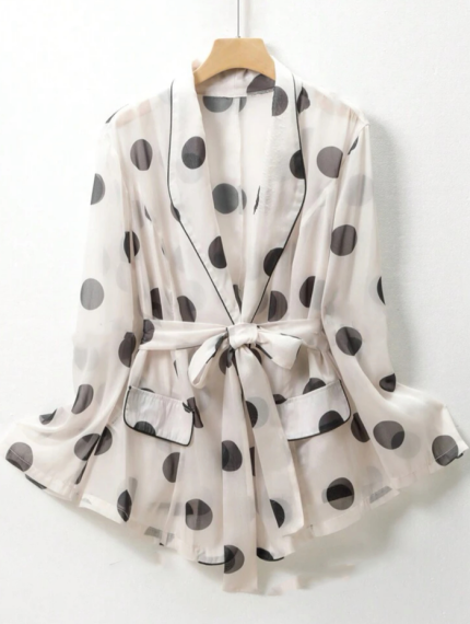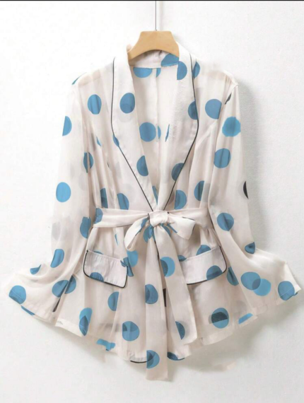Light Blue Polka – Dot Elegant Waist Tie Top Curvey Plus