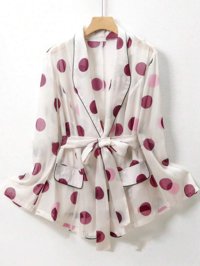 Home Accessories Burgundy Polka -Dot Elegant Waist Tie Top Curvey Plus