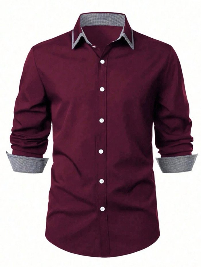 Men Simple Color Daily Style Buttoned Long Sleeve Shirt