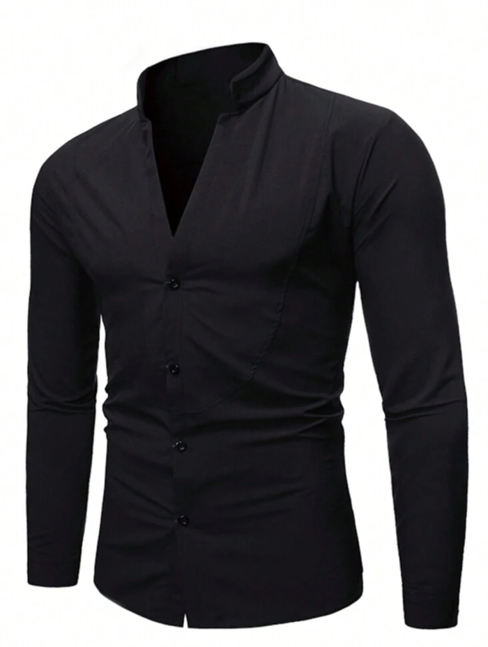 Men’s Standard Solid Collar Long Sleeve Shirt
