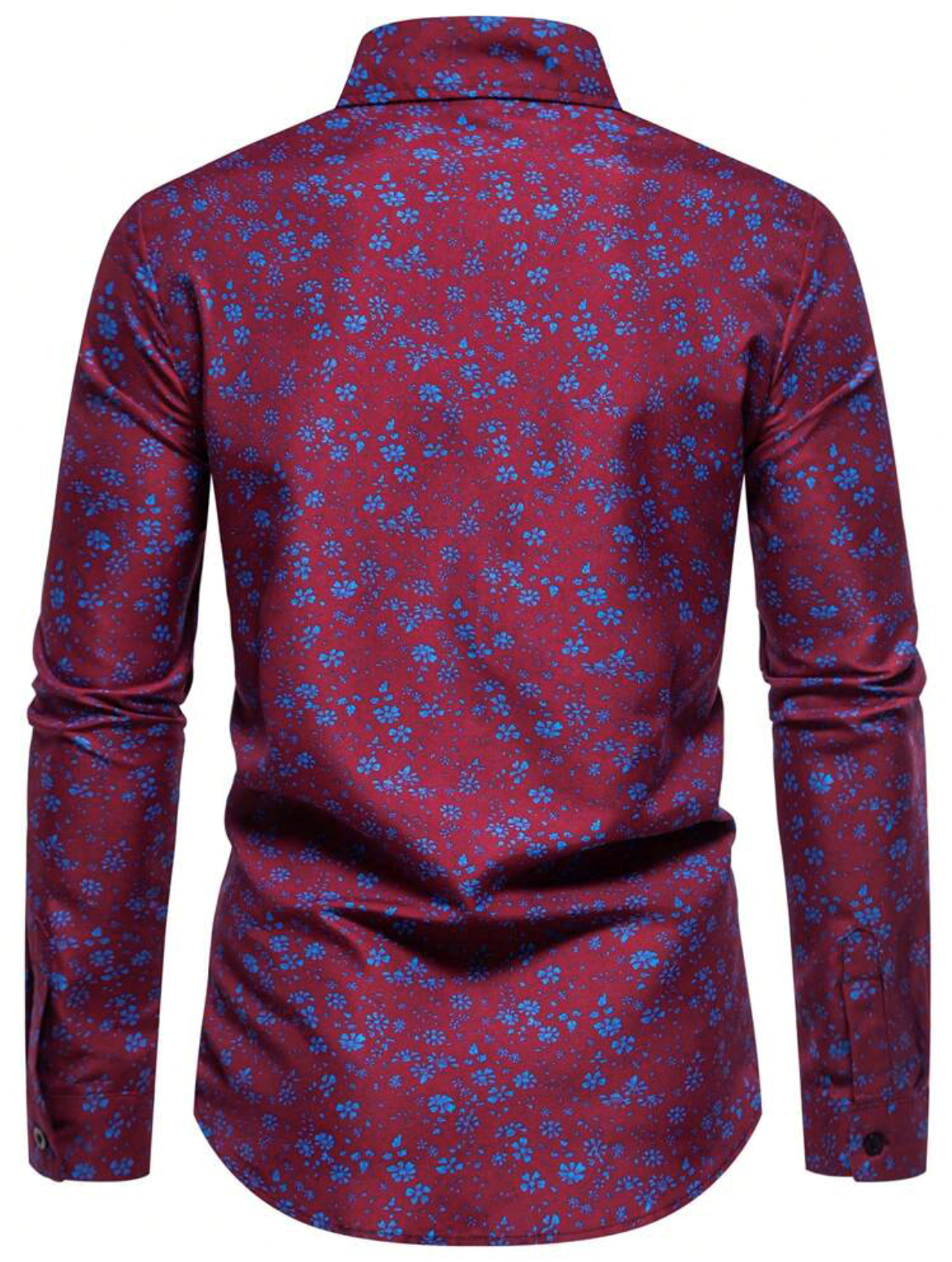Men’s Wine Floral Button Up Shirt