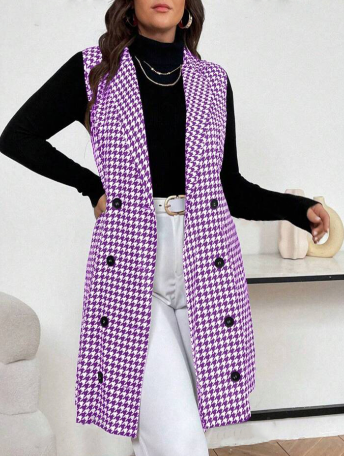 Home CURVY PLUS Purple And White French Houndstooth Double-breasted Suit Vest Curvey Plus